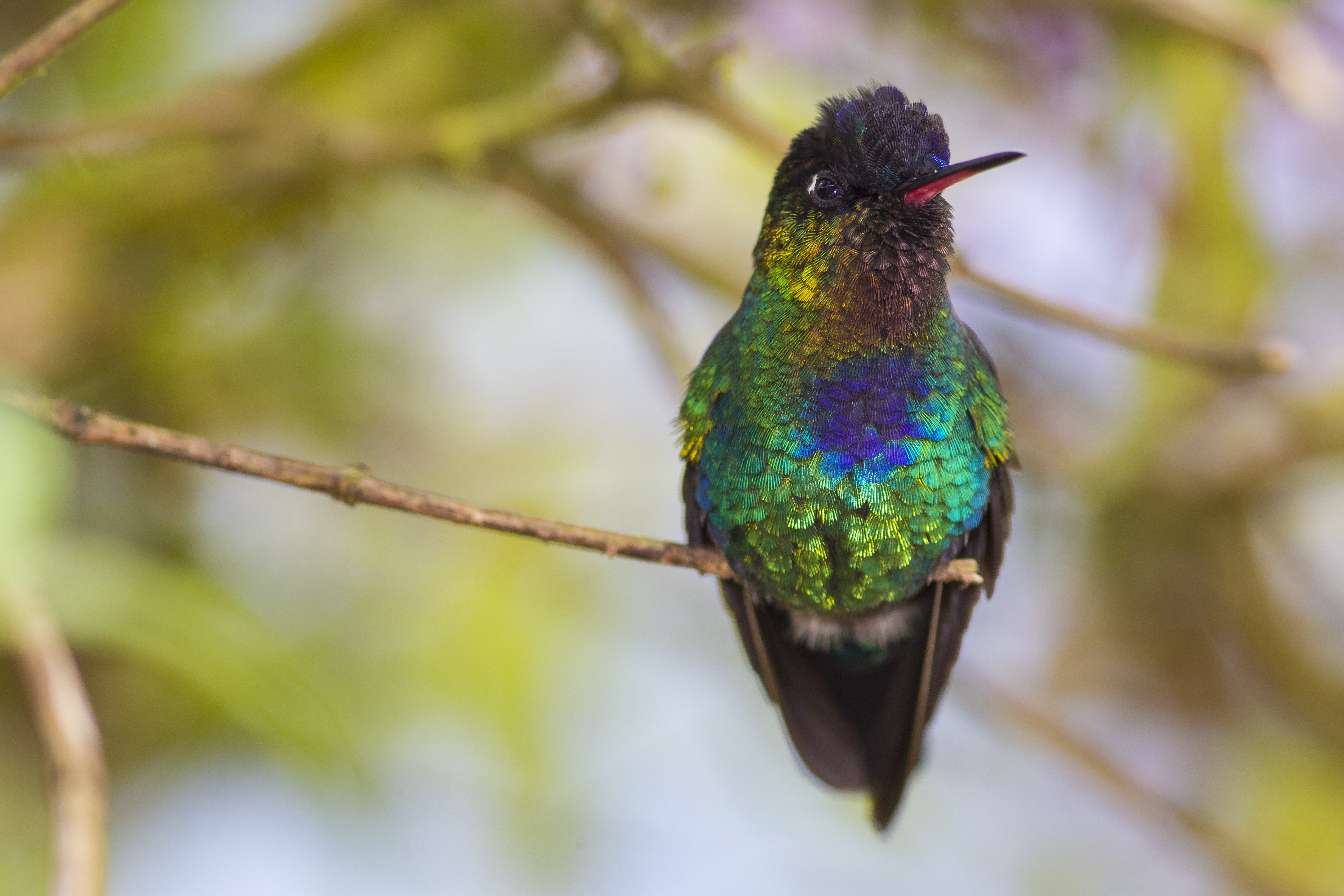 Previous Image Next Image Fiery-throated hummingbird, Panterpe insignis, in Costa Rica. Fiery-throated hummingbird, Panterpe insignis, in Costa Rica.