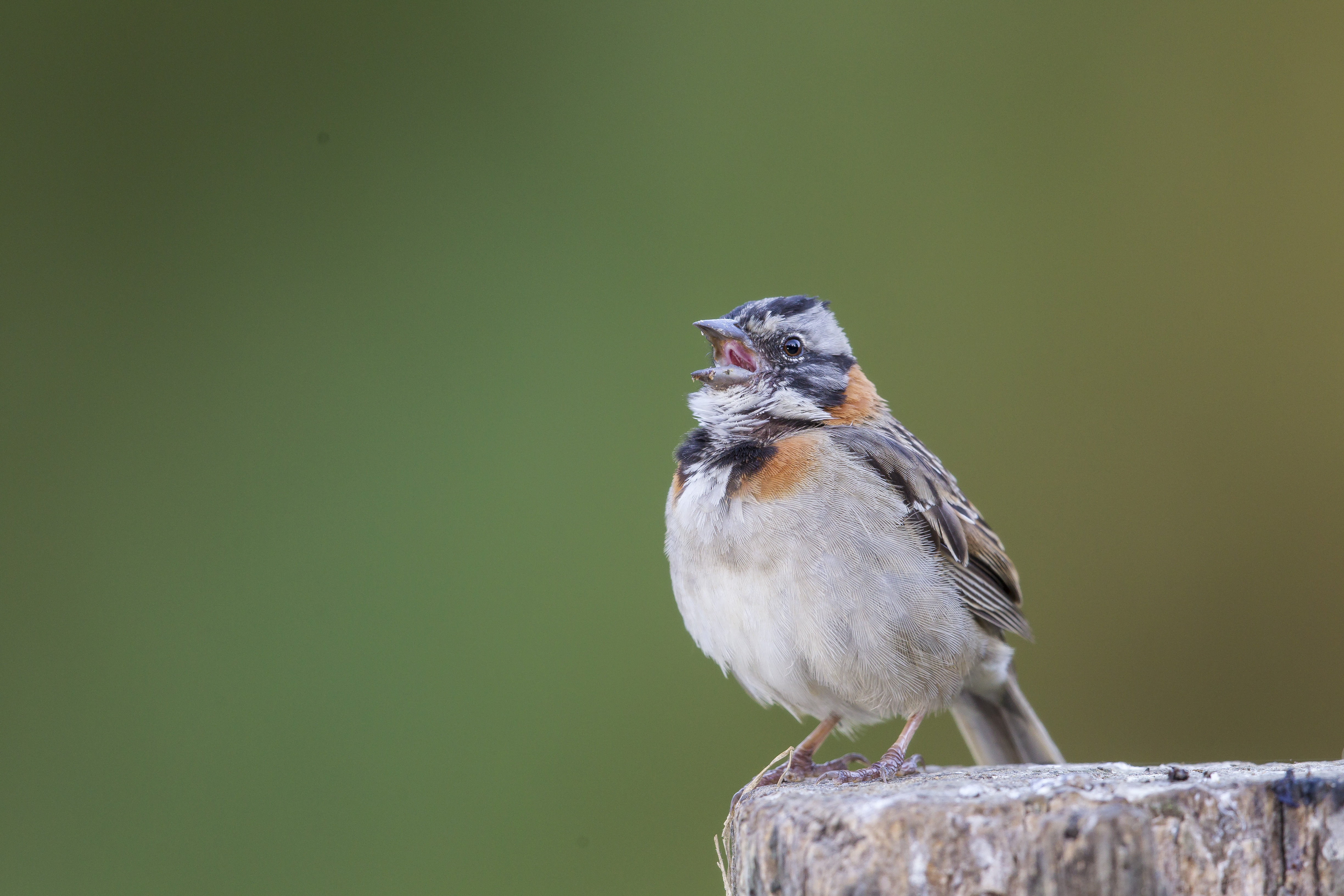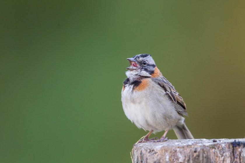 Previous Image Next Image rufous-collared-sparrow-kac1211 Rufous-collared sparrow; Zonotrichia capensis, singing, on a post, Talamanca Mountains, Costa Rica.