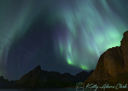 At night we shot based on the aurora activity. Our first night out was pretty good. It was especially nice since we didn’t have to leave the rorbuer to shoot. We just walked across the parking lot and stood on the rocky shoreline. Everyone got great photos of the aurora that night and worked on their skills. We had a visible aurora in the middle of the trip but activity wasn’t predicted until after 11:00pm. Several people decided to stay back at the rorbuer but the rest of us loaded in the van and headed off to a wide, sandy beach. We had great aurora activity and got to play with reflection of the lights in the ocean. Our third chance at the aurora was our best night. Predictions were for spectacular lights and they began right about twilight. I saw them on my way to dinner and had ants in my pants the whole time we were eating. After dinner we drove to a nearby beach and stayed for several hours. It’s amazing how you don’t get tired when green lights are waving across the sky. Our guides said it was one of the best nights they’ve seen. We quit shooting about 2:00am and that was because batteries were dead and cards were full.