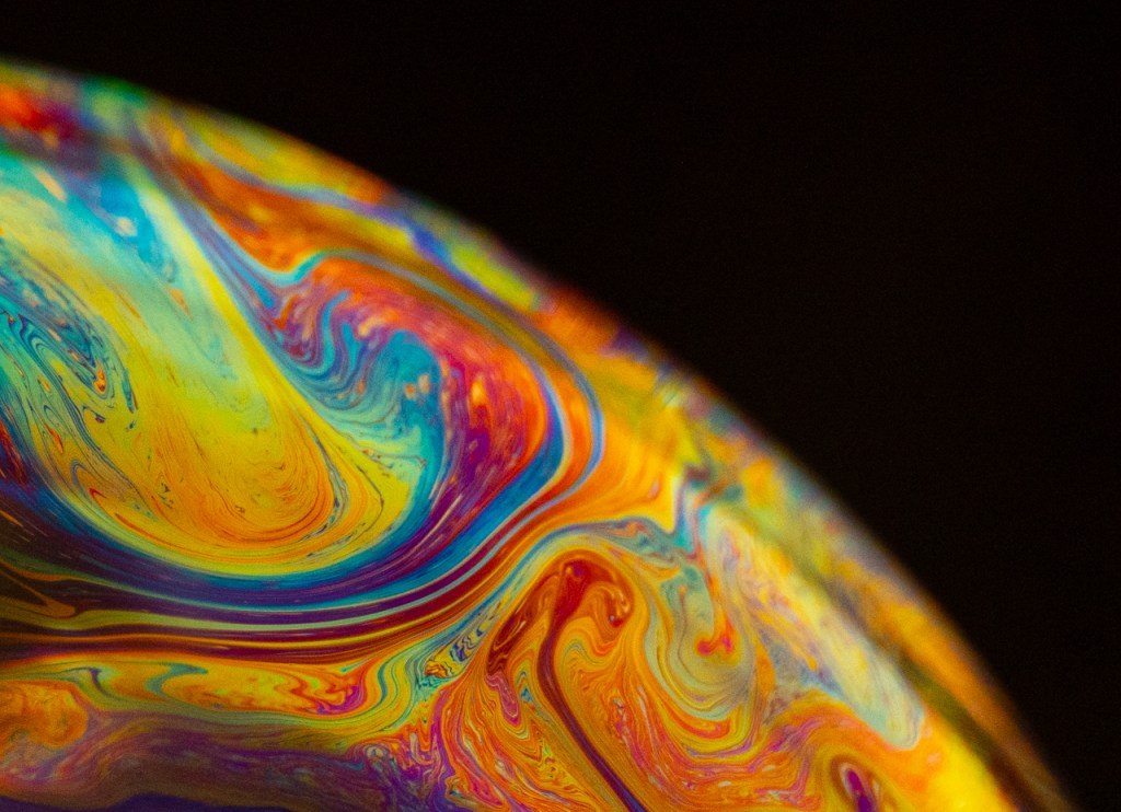 We learn so much about photography when we play. The photo above is a simple bubble but the view is magical.