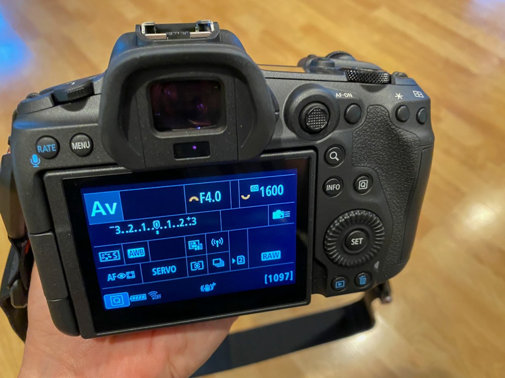 There’s a new “Control Ring” on the front of RF lenses. Rotate it and nothing happens. Rotate it while holding the shutter button half-way down and I can change the exposure compensation. Of course, the Control Ring is customizable.