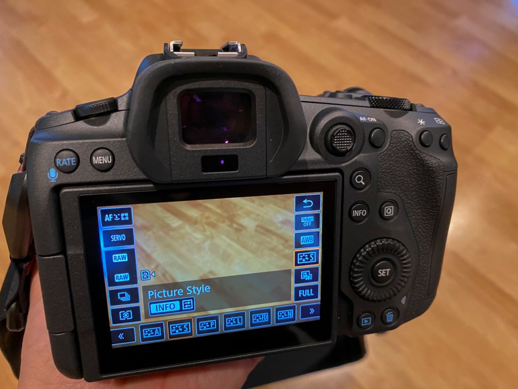 Multi-controller button (little toggle joy stick) on the back is like the one on other Canon cameras. Lots of functions depending on what you’re doing with the camera. Convenient for my thumb on the back of the camera.