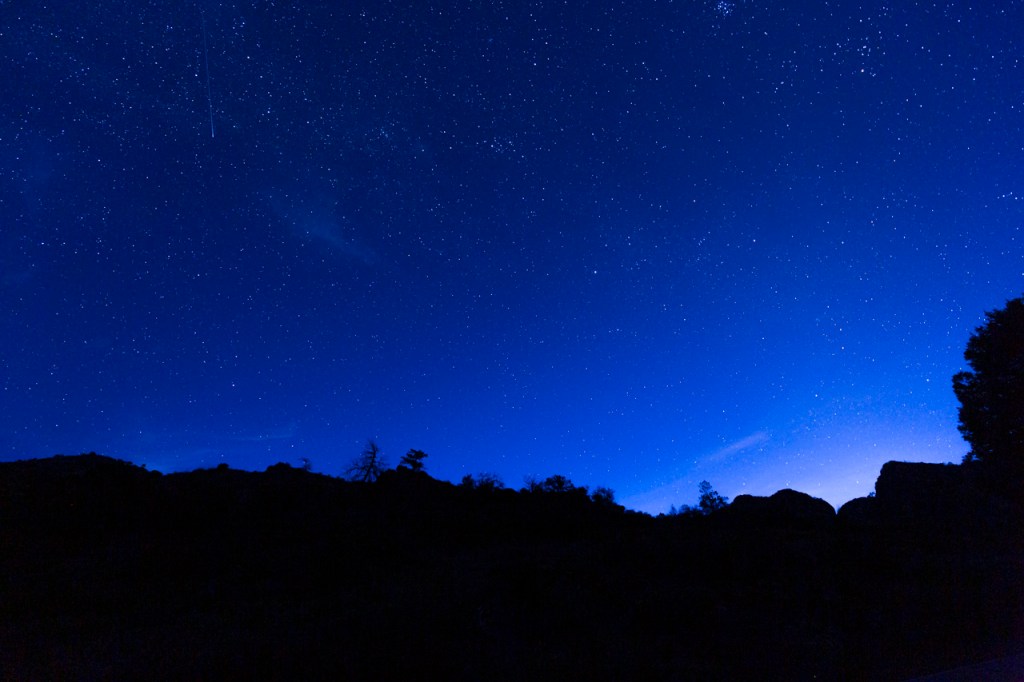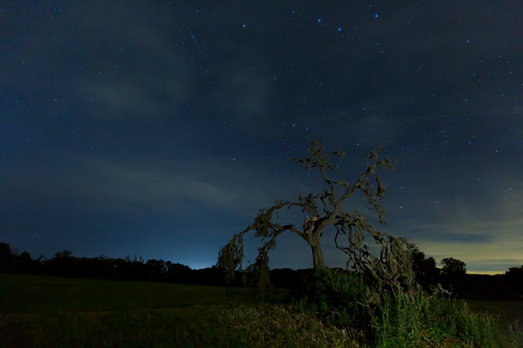 Personally, I’ve been jinxed by cloud cover, bright skies, etc., during this meteor shower but I’m going out one more time to watch and photograph.