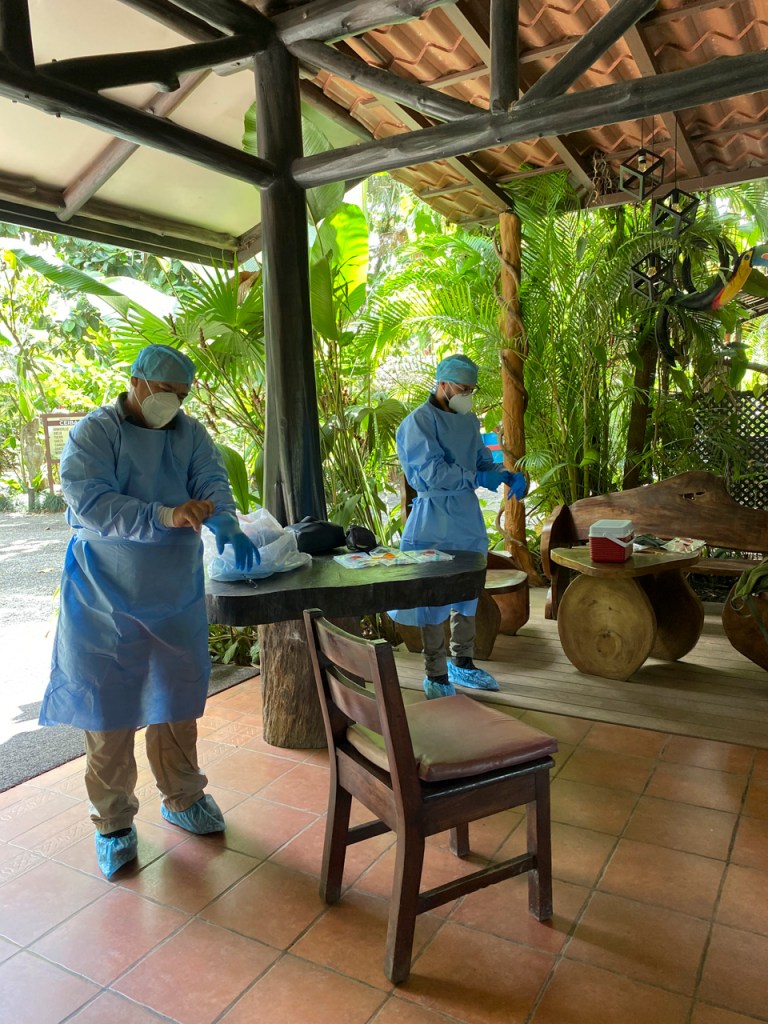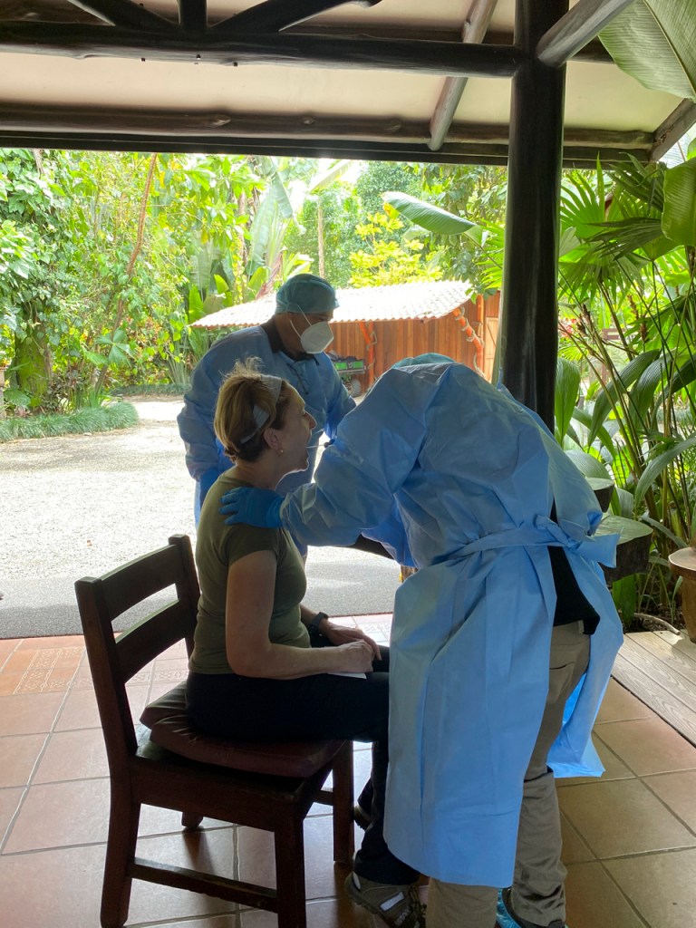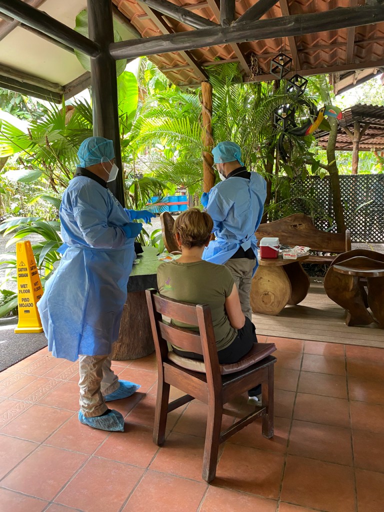 The US requires a negative Covid test within three days of departure for all people flying into the United States. That meant we had to be tested while we were in Costa Rica. Our tour company arranged for lab technicians to arrive at our lodge at an appointed time and administer the tests. The major hotels are offering this service now since all departing tourists need the test.