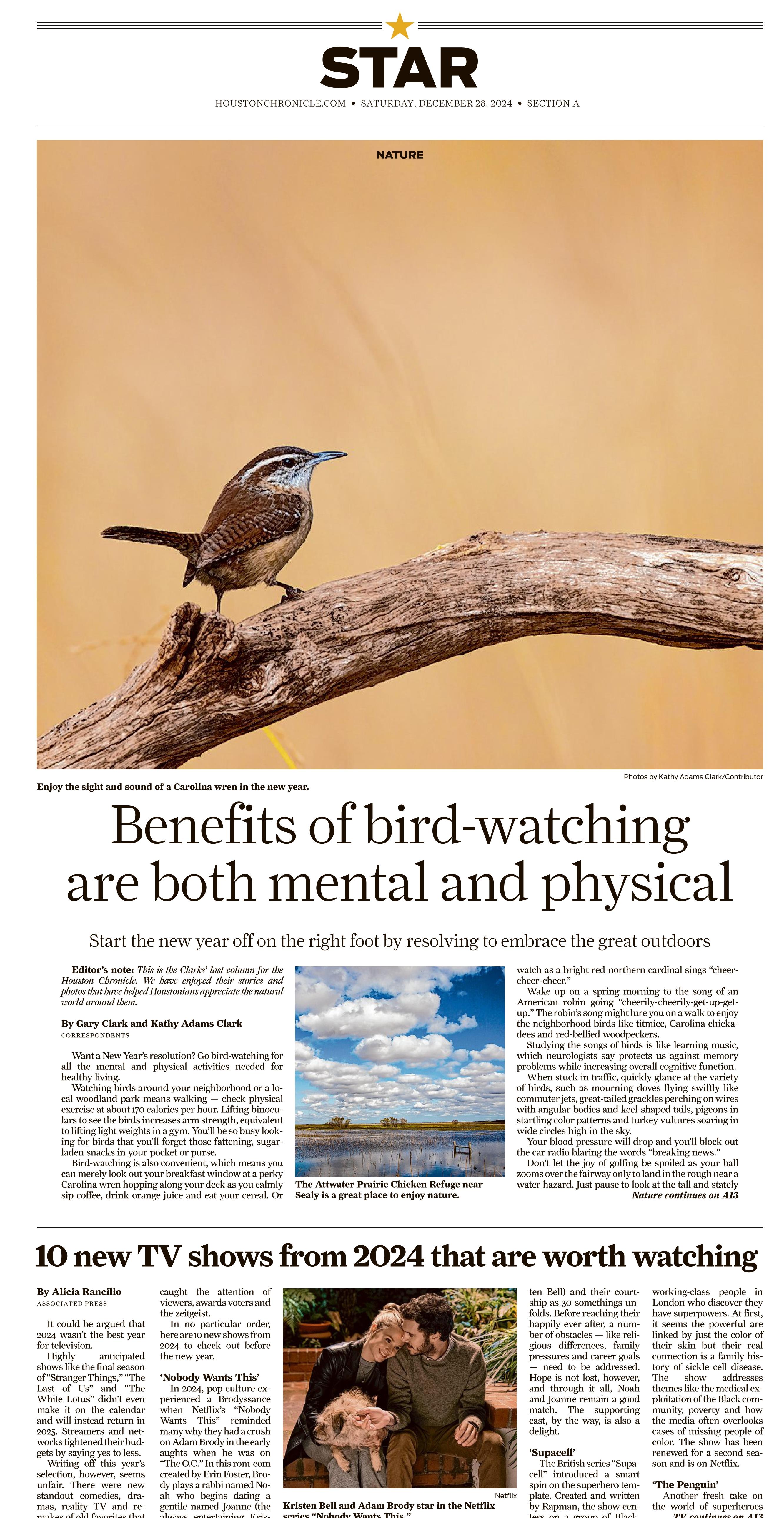 This morning, December 28, 2024, we saw our last Nature column in the Houston Chronicle.