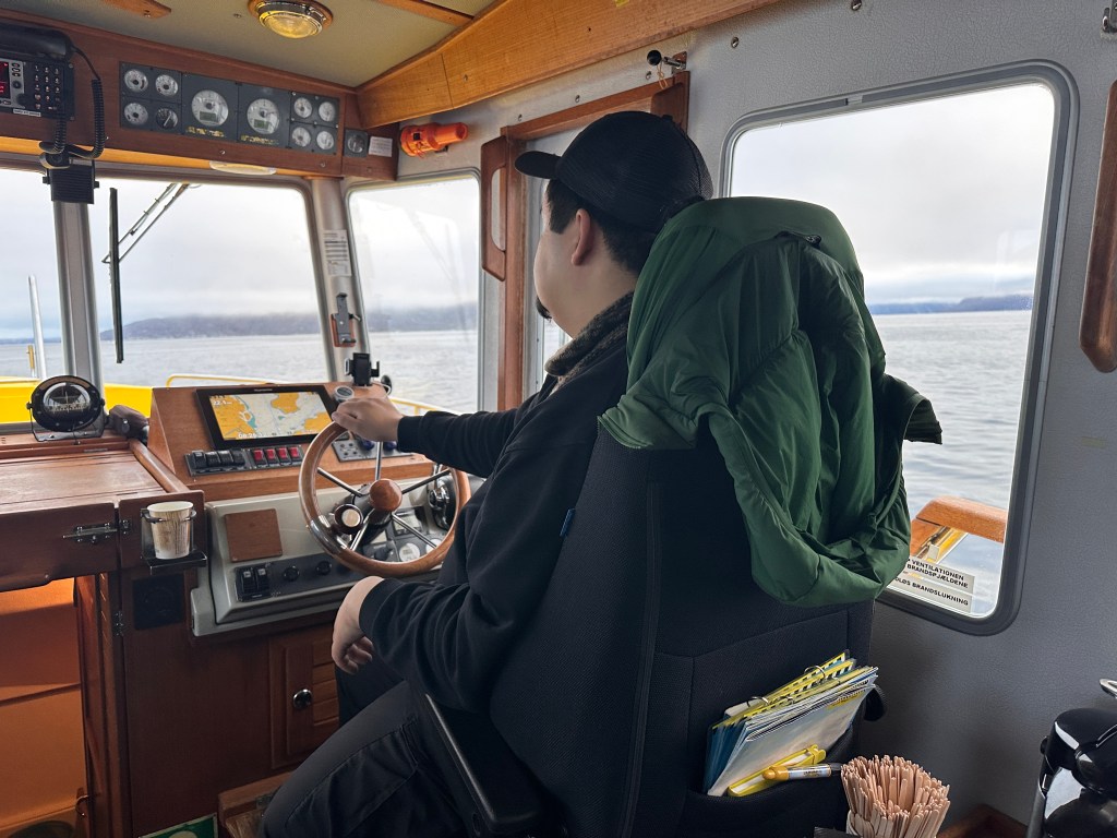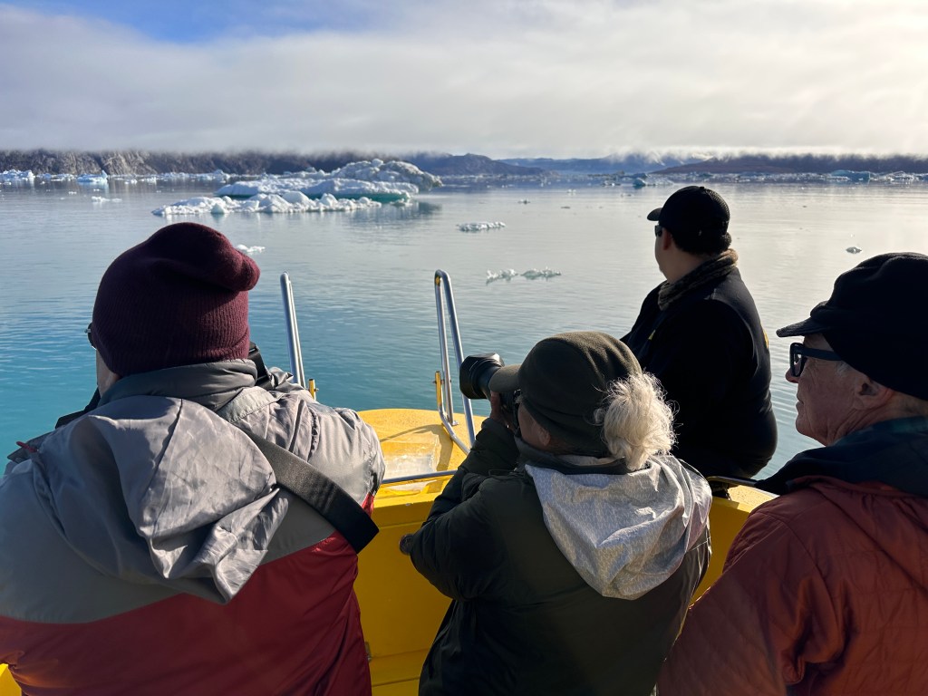 Thursday, Sept 11, we met in the lobby at 8:15am for a private excursion up the fjord to the icebergs. Our captain and Sebastian, our English-speaking guide, were both native Greenlanders.