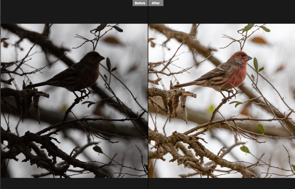 High ISO in low light is grainy. There’s no getting around it. The grain in a high ISO photo is no worse with a R6 MarkII than with an R5 or R3. To my eye, each camera is about the same. The files are usable to illustrate the bird while still retaining nice feather detail.